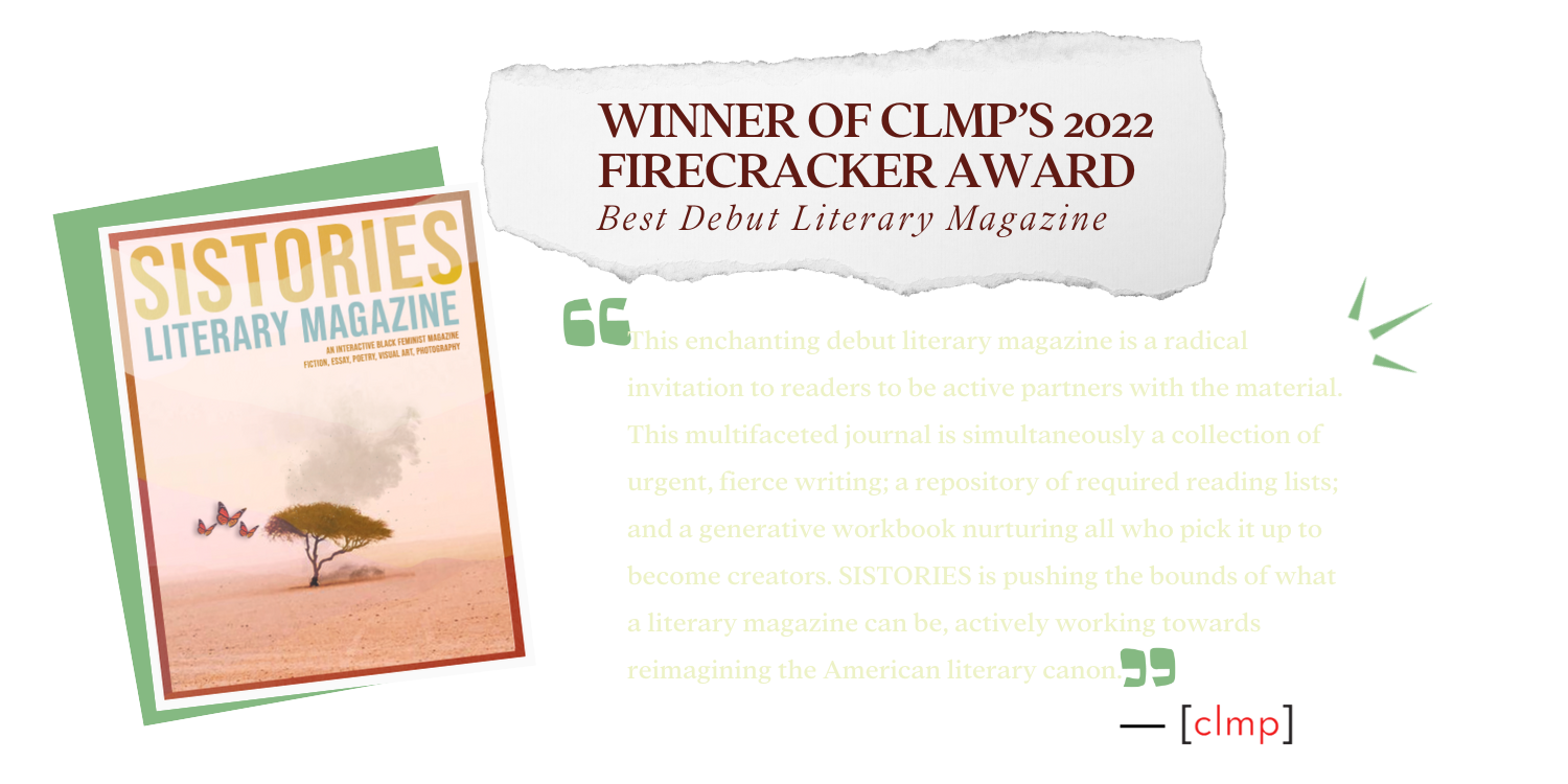 SISTORIES literary magazine opens annually for submissions of poetry, short fiction, nonfiction, visual art, and photography from southern-rooted Black women, femmes, and gnc people. Sign up for our newsletter to get notified.