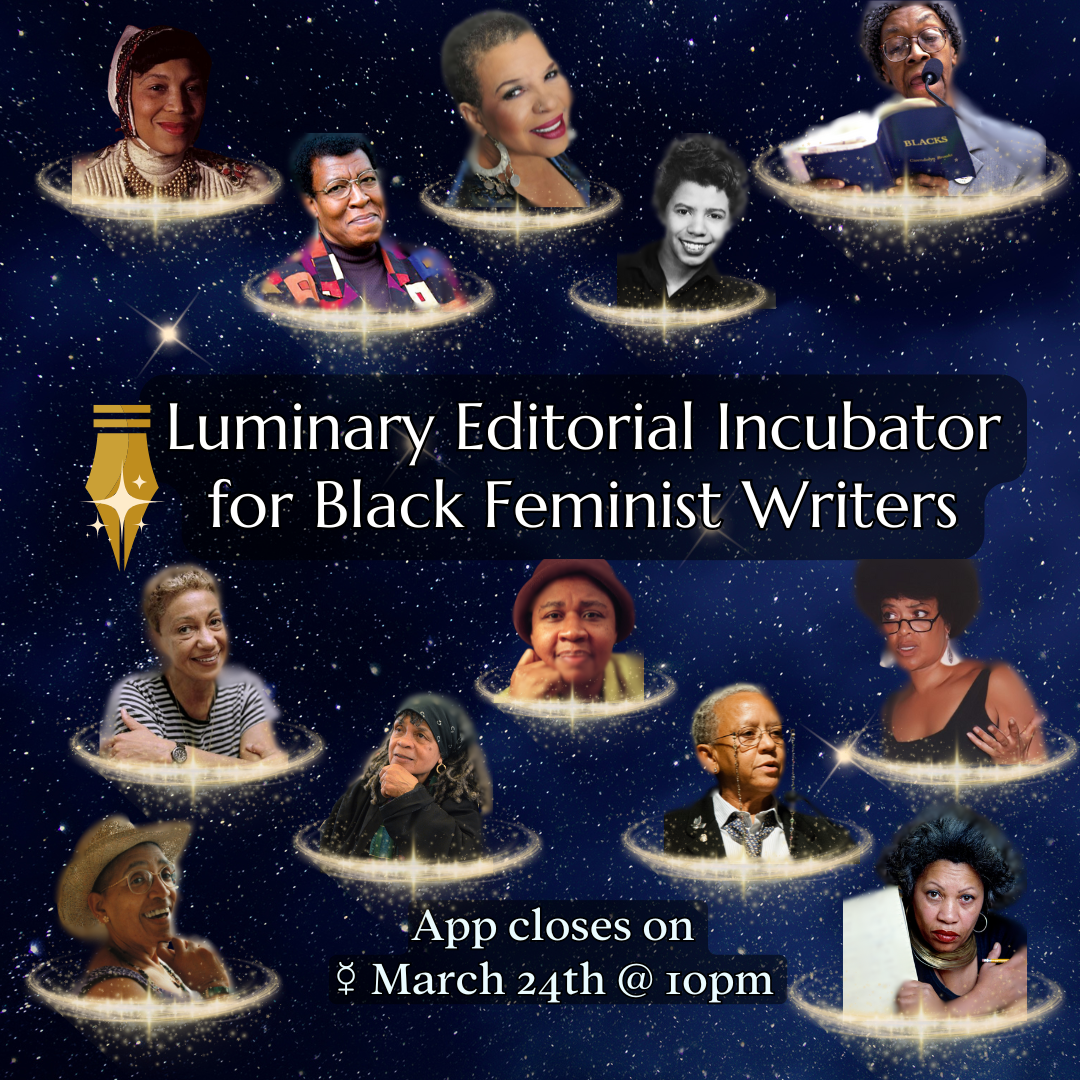 Nestled within ITSOL program series is the Luminary Editorial Incubator for Black Feminist Writers (LEI). The Luminary Editorial Incubator is a 16-week paid fellowship that will host up to six (6) young Black queer creatives, ranging from ages 22-28, who will focus on the life and work of contemporary Black feminist writers, and model the art/work made during the duration of the fellowship after, or in the style of, their works. Alongside the Black feminist learnings of the luminaries to be studied, LEI will be coupled with editorial mentorship from the SISTORIES staff editors. Each fellow will be given $1500 of unrestricted funds to actualize as they require & desire.